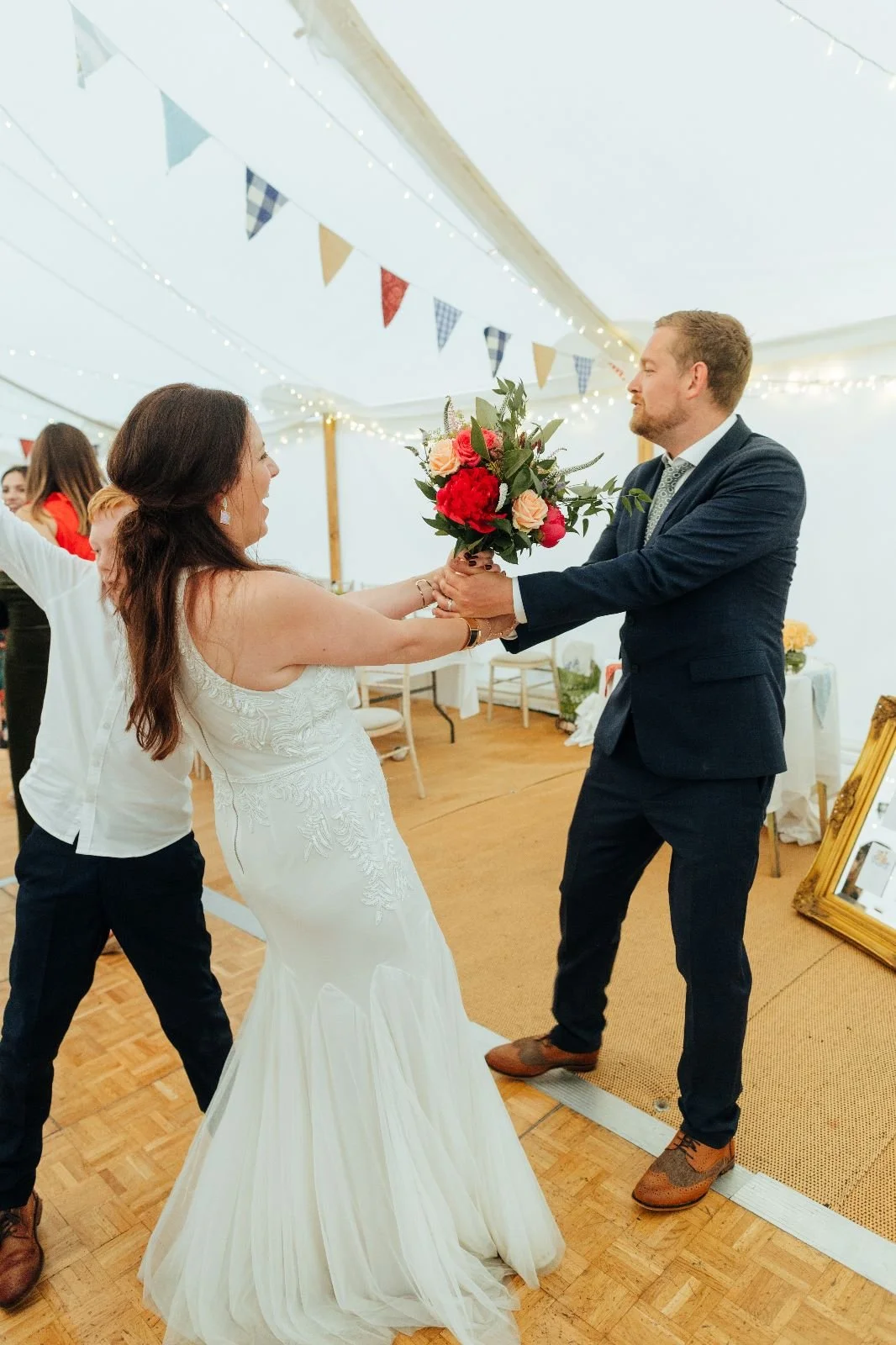 A sailcloth marquee was set within the grounds, complementing the natural light, greenery, and relaxed countryside atmosphere. With the freedom of a family-run space came the opportunity to shape every detail, and they came to us to help bring structure, planning, and practical expertise to the day — ensuring everything ran smoothly while keeping the charm and heart that made the location special in the first place.
